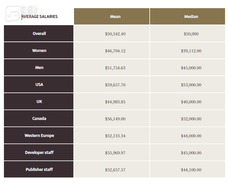 而根据GameIndustry于2018年发布的报告显示,2018年,北美和西欧的游戏行业中,男性的平均薪酬约为51000美元,女性的平均薪酬约为46000美元;其中,有28.6%的男性雇员和15.6%的女性雇员所获得的薪酬高于每年8万美元。