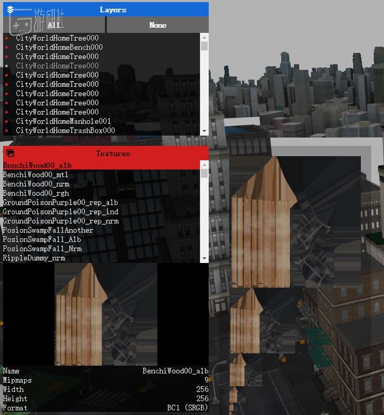 而在“材质”选项下,你可以浏览整张地图使用了哪些贴图。其实这两个过程就基本将游戏地图是如何搭建出来的大致步骤解释清楚了。