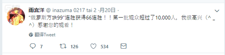 看完这些“骚操作”,我才注意到“普通网友”其实就是俄罗斯方块的世界冠军雨宫太阳 (あめみや たいよう),而这场胜利,正是他“99连胜挑战”的其中一场。