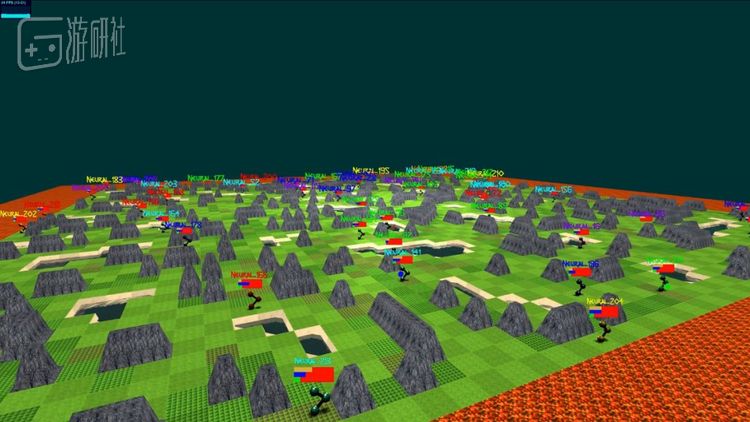 他们借鉴了多款流行的大型多人在线网游,构建出了一个“资源有限,竞争者众多”的游戏环境,来观察其中的几十上百个AI将如何行动——是的,这个游戏的玩家只有AI,没有真人。
