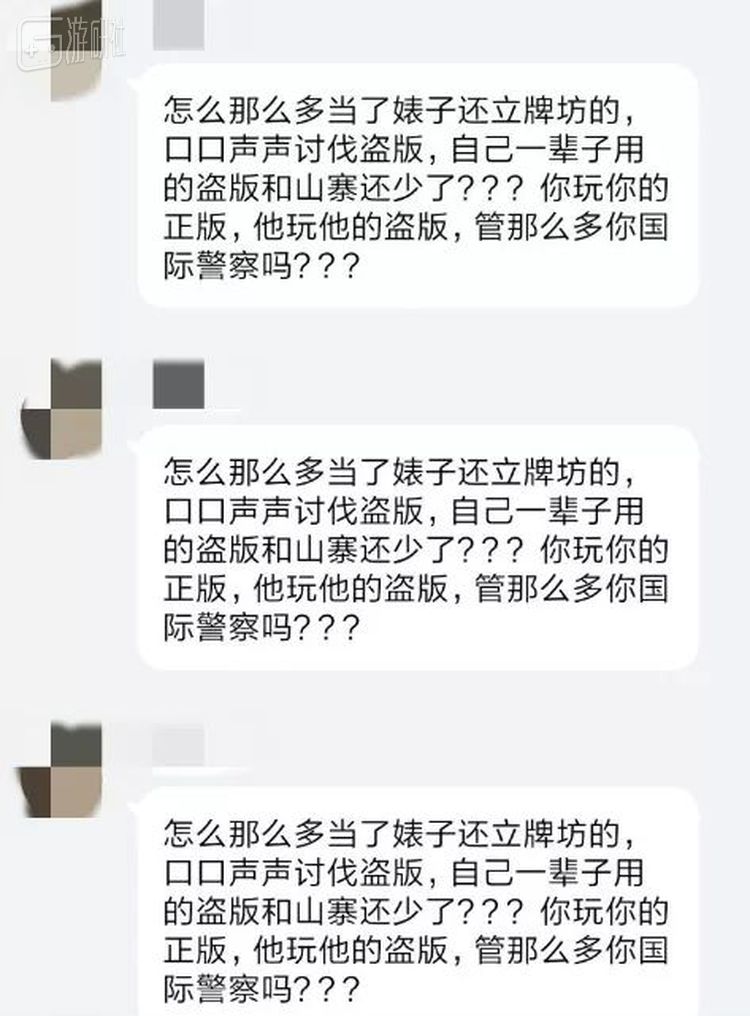 面对我“玩不到正版就来玩盗版吗?”的疑问,有的人用几个毫无意义的表情包回复我,有的人干脆直接把我拉黑,只有一个人正面回应了这个问题。他说: