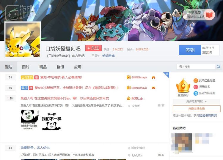 口袋妖怪复刻吧在游戏发行4年后仍有不低的热度