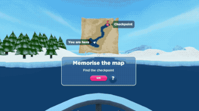 游戏的内容比较简单,玩家驾驶一艘小船,游戏每关开始时会展示一个关卡水域的地图。游戏正式开始以后,地图就会关闭,玩家需要靠记忆来引导小船找到目的地。游戏每0.5秒就会监测一次玩家行为,产生的数据将会用于分析玩家的空间导航能力。