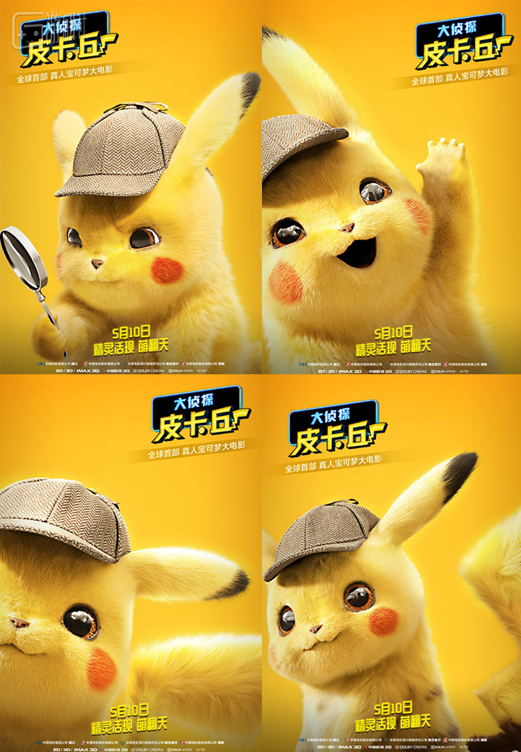 真人电影《大侦探皮卡丘》公开了一组萌力十足的皮卡丘主题海报,影片将于5月10日在国内同步上映。