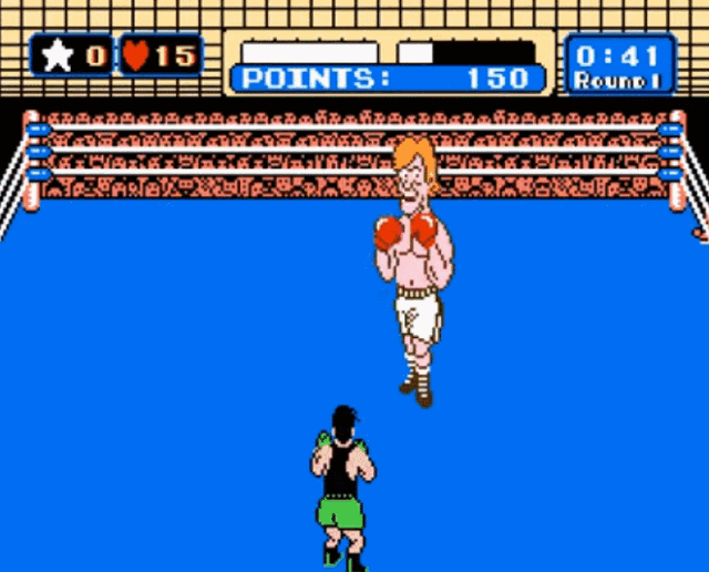 但这个芯片对旋转和缩放的实现也并非完美,因为它不能在让物体旋转的同时对其进行缩放,也就是说如果你想靠它做一个第一视角的飞行射击游戏,那就还不太现实。竹田玄洋和宫本茂也想过做一款由两个屏幕横置组成的大型赛车游戏,但因为性能的限制,这个方案最后也被放弃了。最终他们拿出来的,就是《Punch-Out!!》。