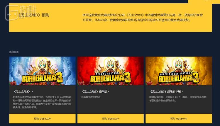 《无主之地3》标准价格分别是标准版59.99刀、豪华版79.99刀、超级豪华版99.99刀,在国区预购里定价分别为29.99、49.99和69.99,不分青红皂白统一砍了30刀(约合205元人民币)。