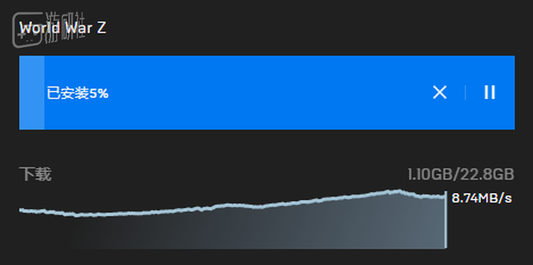 过了几个小时,此时Epic商城开放国区消息已经开始传播,所以我又用《僵尸世界大战》这种相对热门的游戏来检测一下CDN节点有没有受到影响——结果是速度在8~9MB/s左右,依然很稳定。