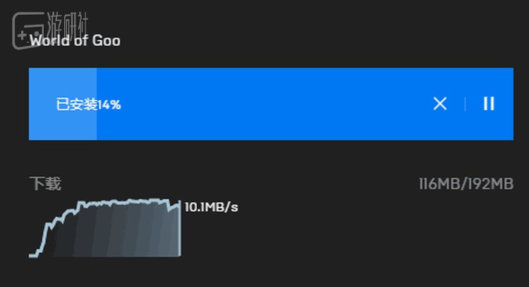 我的测试环境为北京联通200M宽带(有线连接),平时Steam平台下载满速在20~25MB/s左右。第一个测试的Epic商城游戏是《粘粘世界》,时间为凌晨两三点(刚得知开放国区消息时),下载速度平均10MB/s,相当稳定。