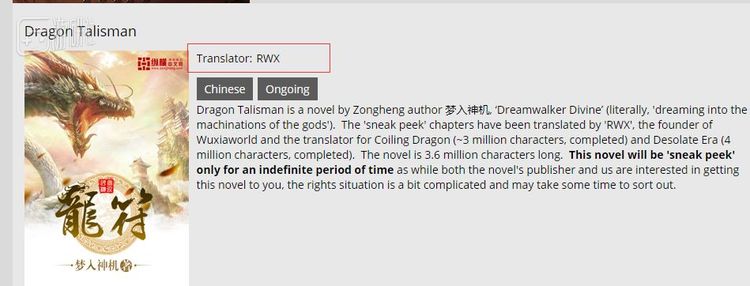 甚至Wuxiaworld里的作品简介中,也是把译者的名字放在了最上方。