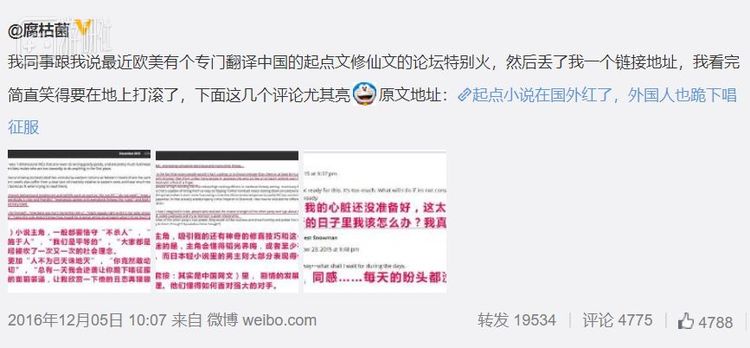 虽说这个说法是当事人的一面之词,如今已经无法考证,但他对网文的喜爱倒是真的——像他一样的人也不在少数。的确有一群来自世界各地,使用不同语言的外国人在读着翻译过来的中国小说。