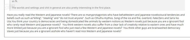 这段回复用词比较过激,就不全部翻译了,大概意思是:“你还是看的太少了”。