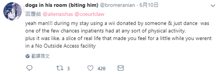 有不少网友在这条“回应”下面现身说法,侧面印证RARING TO GO的观点。有前患者表示,使用Wii跳舞是他住院期间为数不多的体育活动之一: