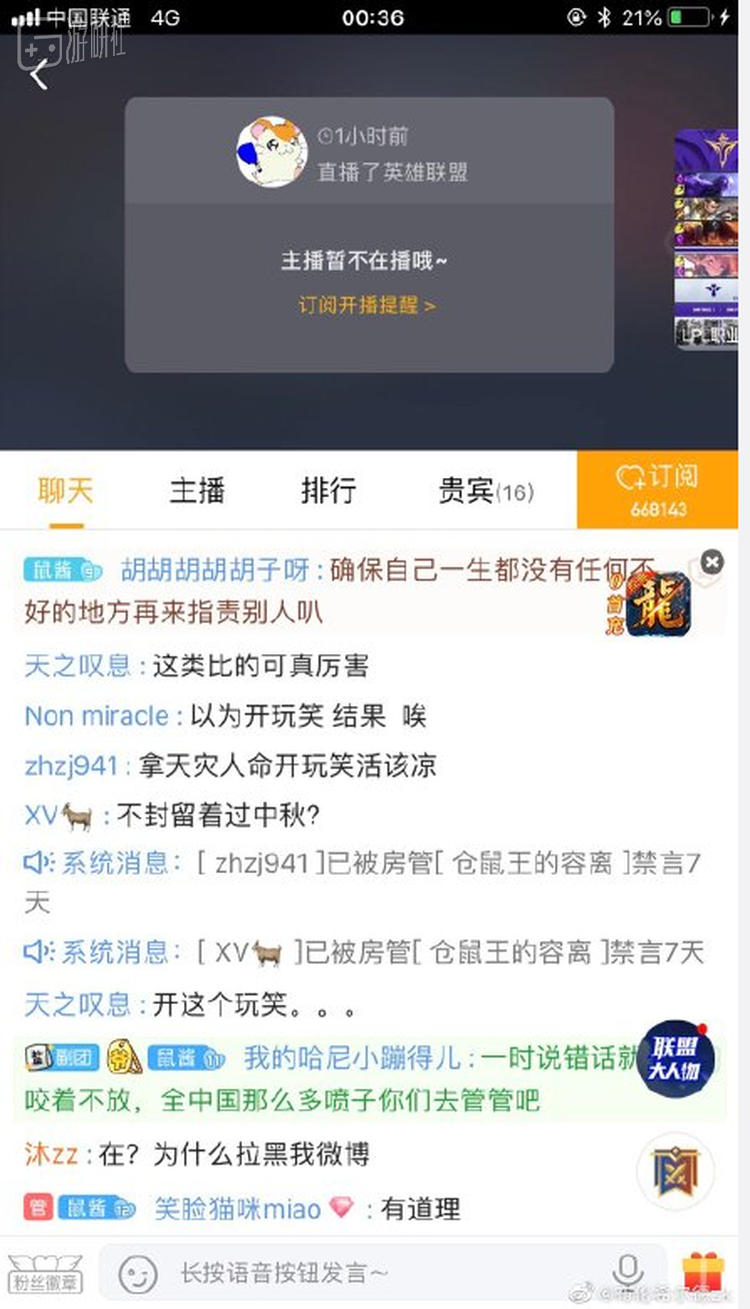 在仓鼠王的直播间内,也有网友提出“拿天灾人命开玩笑活该凉”、“不封留着过中秋?”,之后仓鼠王直播间内的房管将发表评论的两名网友禁言。