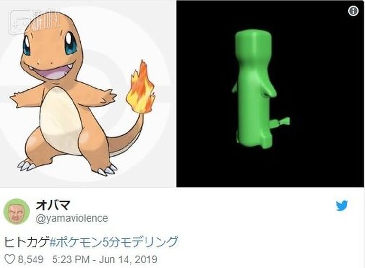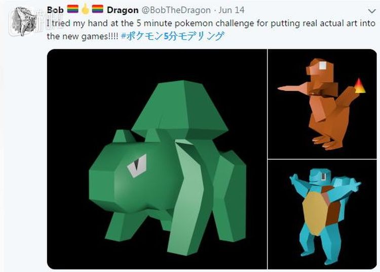这位画手用五分钟绘制出了御三家的模型,他表示再多给五分钟,他甚至能让他们动起来。