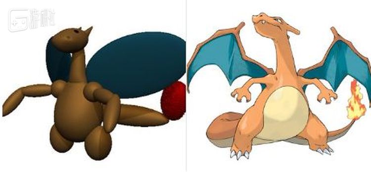 显然这位兄弟在5分钟的限制下过于紧张,连颜色都忘记换。虽然还原了小火龙的手脚和尾巴,可这怎么看都更像是某种奇怪的按摩器材…