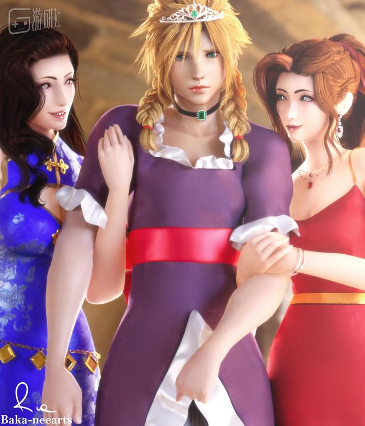 不过这样的场景在1997年就实属难得了。1997年,Square Enix发售的游戏《最终幻想7》中,已经有了男主角克劳德换上女装的剧情,这段既诙谐又有趣的剧情为玩家们带来了深刻的印象。