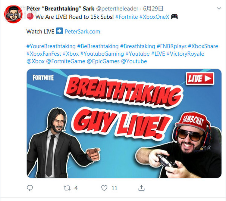 他的推特不再有那么多人回复,YouTube频道里视频的平均观看次数也稳定在了1000次左右。尽管在自己的直播频道的宣传图上标明了“Breathtaking本人直播”,更新频率也更加频繁。