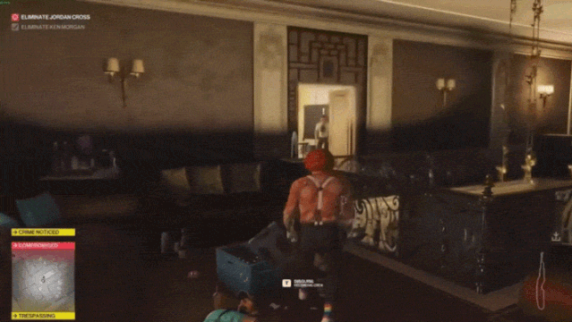 而且IO做游戏本身就有一些恶趣味,在之前的《杀手》游戏中都会设计一些恶搞的内容,有时让47号穿上滑稽的衣服,有时候给NPC设计一些无厘头的死法。他们自己也很喜欢手提箱的诡异追踪效果。因此他们有意的把这个bug多留在游戏里一段时间。