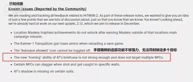 不仅如此,官方还经常拿手提箱的事开玩笑。在bug曝出之后,IO在游戏的更新日志中表示我们已经知道你们说的手提箱的问题了,不就是“目前的手提箱太弱,不能同时锁定多个目标吗?!”