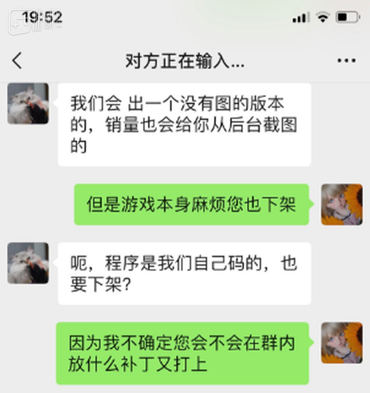对方又表示可以考虑更换素材,会推出没有图的版本。但当XIN要求他们将游戏下架时,对方以“程序是我们自己码的”为由,拒绝了。