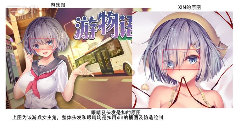 经过仔细的比对,XIN发现这游戏中的图已经不止是与自己的画风相似了,一些部分根本是直接从自己的作品中复制粘贴出来的。
