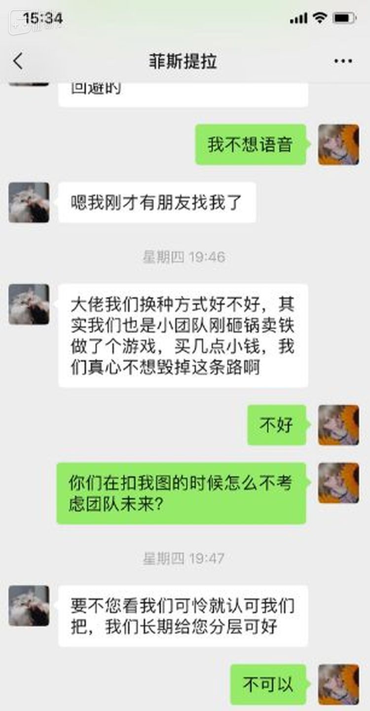 游戏主创坚持不下架和赔偿,但XIN也绝不退让。这种情况下,对方也不再那么友善,甚至在粉丝群里说XIN是想来骗钱的骗子。