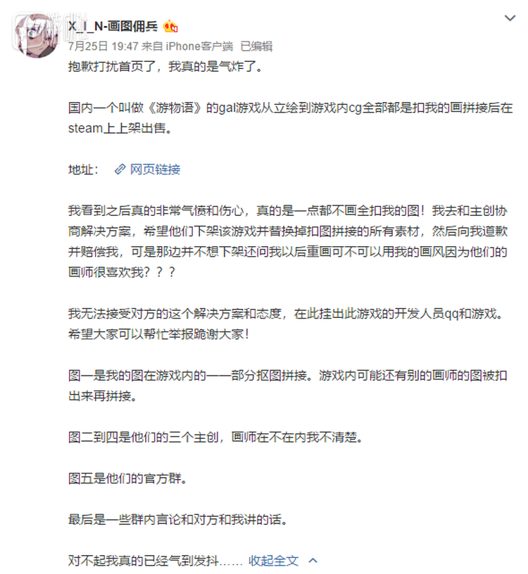 但XIN不是第一个受害者,也不会是最后一个。Steam上还有很多盗用CG的地沟油存在,有些原画师本人可能完全不知情,有些可能知道了却只能暗气暗憋。