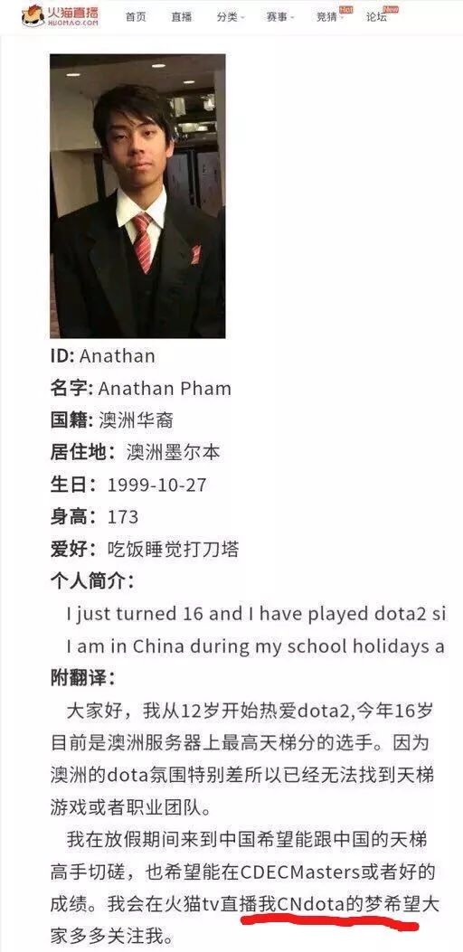 最近有人翻出了Ana当时在国内平台直播时的简介,上面写着“直播我CNdota的梦”。
