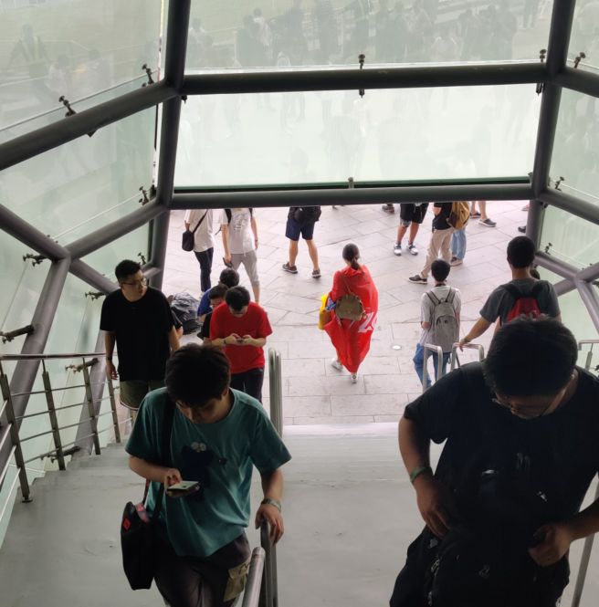 这是六年来中国队第一次在Ti舞台的决赛上缺席,场馆外的天台上有人在一根接着一根地抽烟,有人激动地和远方的朋友打电话说着现场情况,但是没有人们想象中的泪水。