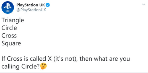 PlayStation英国一条关于“手柄按键怎么读?”的推文在几天之内得到了5万多个赞,让人们再次议论起了“Cross”和“x”的历史难题。不过这次显然连官方也看不下去了,PlayStation的欧洲官推直接发推表态:这个“X”图形为十字,应该读作“Cross”。