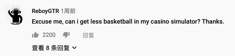 评论区,一条嘲讽意味十足的评论被赞了两千多次:“不好意思,能把这个赌博模拟器里的篮球元素再减少一些吗?谢谢!”