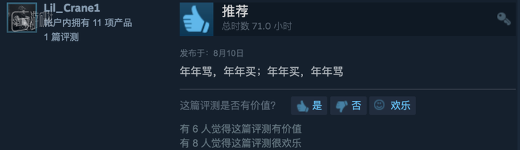 “好游戏”的Steam评测区,大部分情况下都不如“烂游戏”的评测区精彩。