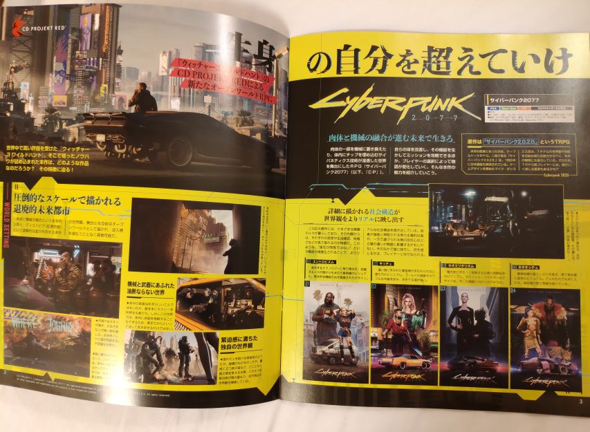 SPIKE CHUNSOFT拿到了《赛博朋克2077》的日本发行权,于是今年的宣传重点大幅度倾斜到了这个游戏上,宣传册像游戏杂志一样事无巨细地介绍了游戏的各种特色和世界观,甚至还放了两页制作人的采访。