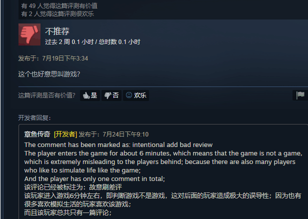 我不能肯定钻子更改态度的真正原因,也不确定他做游戏是不是真的“为了娱乐”。但玩家没理由因为这些外部的原因改变对游戏的评价。发售整整两个月,《白石洲往事》的好评率停留在了20%,依然是34篇用户评测。