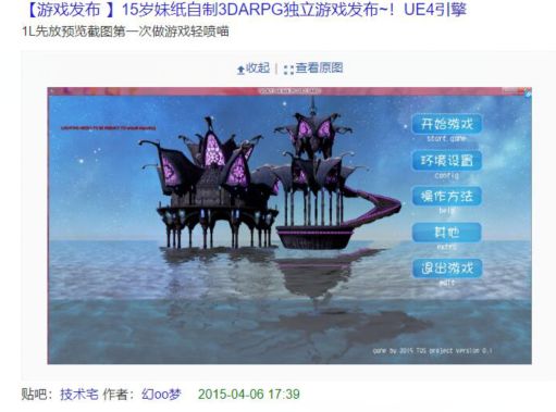 四年前,还在上高中的最终虚妄在贴吧上发布了她使用虚幻4制作的第一个游戏Demo,当时她只有十五岁。
