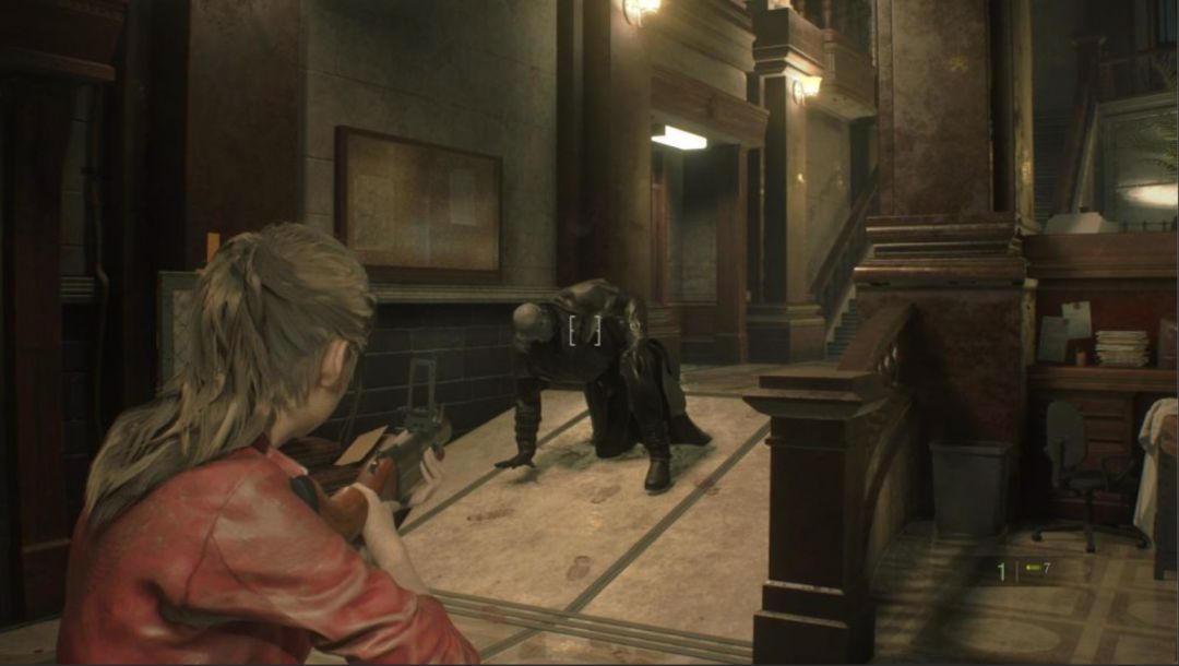 作为《生化危机》系列最具代表性的强敌,暴君的特性不但早就被我们掌握,而且早就被开发出了各种调戏打法。当它在2代重制版中再次登场之后,不少自带迷之自信的玩家们抬手一枪便打掉了它的帽子,然后漫不经心地躲进原作中的所谓“安全屋”(非存盘点),却不想这货推门就进来了。走投无路的我们只能跑入连丧尸都进不来的警局一楼门厅,结果“咚咚咚”的大皮鞋声一样尾随而至……