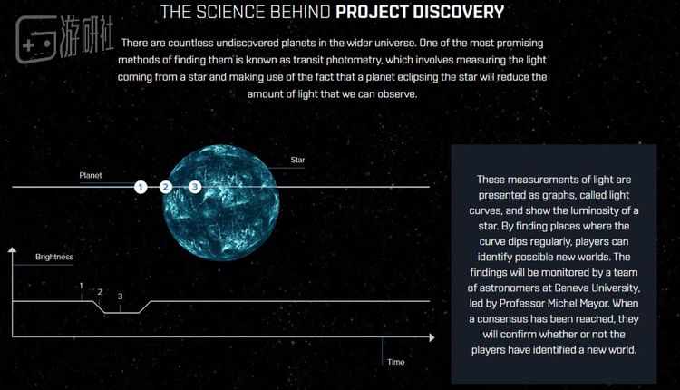 这些判断本身很多时候并不复杂。比如在系外行星项目中,判断是否存在行星的标准很简单:脉冲星之外的恒星亮度变化一般是无规律的,而如果有行星在围绕恒星旋转,恒星就会因为这种公转而产生有规律的亮度变化。玩家在内置游戏中,只需要观察亮度变化是否有规律,然后标注出来就行。整个过程并不需要玩家掌握多么严肃的天文学或者物理学知识。