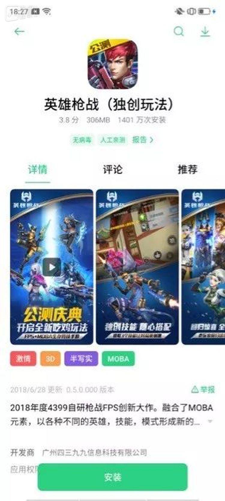 可就在法院处理的时间里,在人们争论的时间里,《英雄枪战》却依然能够好好地待在应用商店的货架上,带着“独创玩法”的标签,作为一部“4399自研枪战FPS创新大作”继续带来盈利。