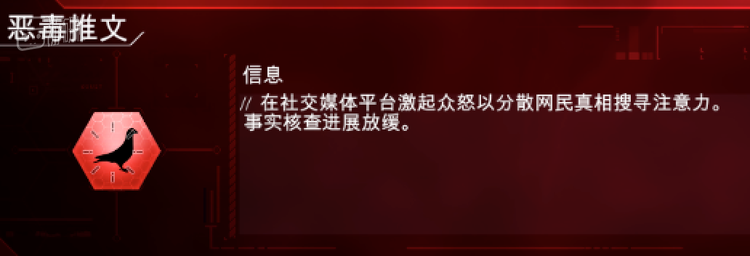 可能只是一些懂行的人实在看不下去出来说几句,但随着事情越闹越大,就会有各国政府牵头成立的事实核查机构一起辟谣。在游戏中,他们的能量还是很大的,如果你不作出点措施抵抗的话,很可能就会因为明白人太多而功亏一篑。