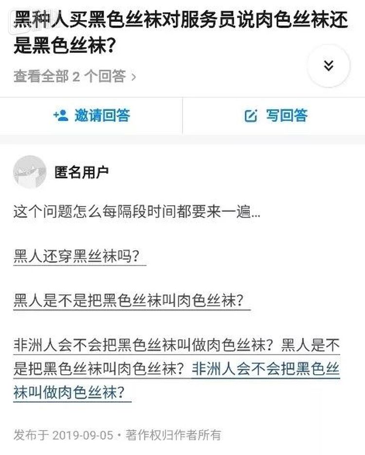 仔细想想,尽管“黑人丝袜的黑色/肉色之争”已经是一个长期存在的“经典问题”,但如果我们真想去得到一个确切的、唯一的结论,似乎也不是一件难事——只要去问一下黑人女孩们,或者生活在多人种国家的居民们,就很容易得到答案了不是吗?
