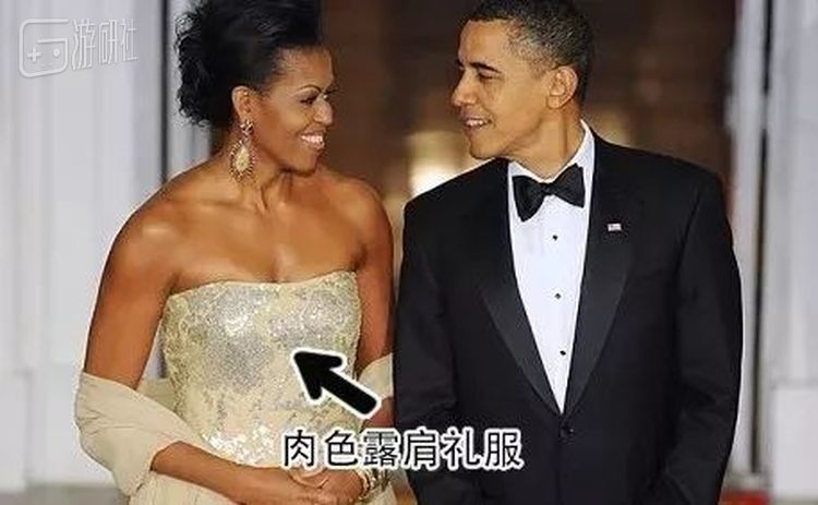 2010年5月,为了迎接来访的印度总理,奥巴马夫妇在白宫举行国宴。国宴举行得很顺利,但后续的报道却出了麻烦——美联社在描述米歇尔·奥巴马的晚礼服时,援引了服装设计师的描述“(这是一件)纯银亮片,抽象花卉,肉色的露肩礼服(Nude strapless gown)”。
