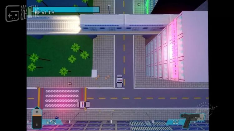 Bearly Regal则想出了一种巧妙的解决方式,采用了初代GTA式的俯视视角来实现在庞大夜之城中的移动。