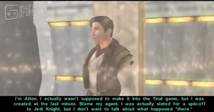 “我叫亚顿,本来不应该出现在这个游戏里,但是最后还是被放进来了。这得怨我的经纪人,本来我是要在另一个绝地武士游戏里出场的。不过咱们还是别聊那事了。”这是在说这个角色从《绝地武士》挪到《旧共和国武士2》的事情。