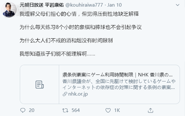 所以没几天后,香川县县议会又做出了一次修改:取消对“智能手机”的管控,变成“未成年人每天只能玩一个小时游戏”,并解释此前是表述有误。而其余条例则大致不变——但争议声音仍然没有变小。
