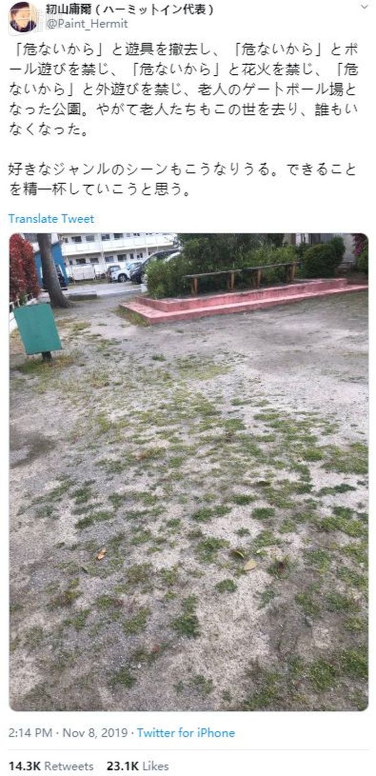 公园里孩子的身影逐渐减少,直到全部消失时才引起了大家的注意。不久前,一位日本网友发了一张公园的照片,其中只有光秃的地面,萧瑟的环境。