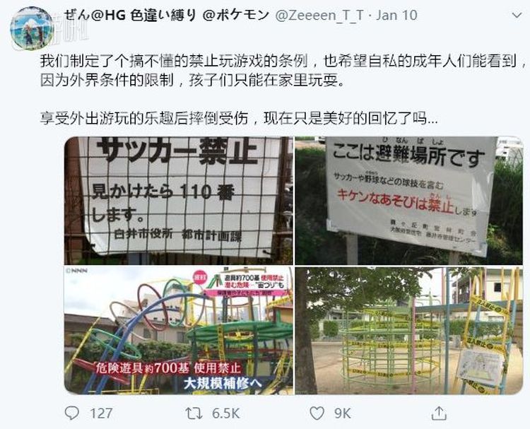 这条消息引起了很多网友的关注,大部分人这时才突然惊醒——如今孩子的游乐场竟然已经快消失殆尽了。事后这条推文的博主提出疑问:“因为‘危险’就干脆抢先一步全部禁止,我想知道这样的行为真的是正确的吗?”