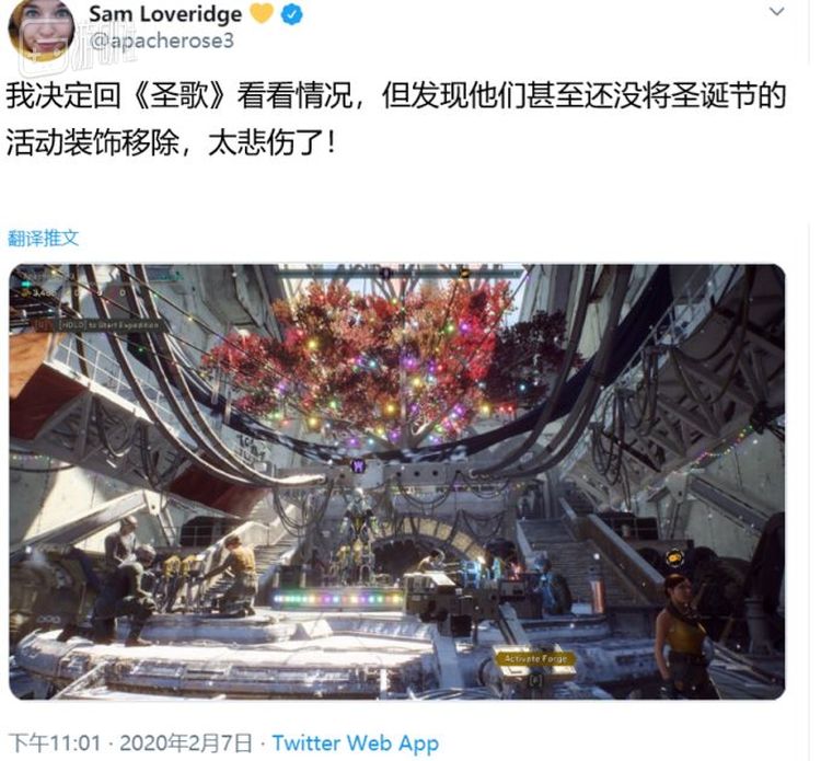 2019年,自《圣歌》发售到年末的这段日子里,游戏的评价可谓跌到了最低谷。几天前,外媒GamesRadar的主编曾重回《圣歌》,却发现官方甚至还没将两个月前的圣诞活动装饰移除: