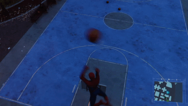 在这款销量口碑双丰收的游戏中,作为一名超级英雄,作为蜘蛛侠,玩家身负惩恶扬善,打击违法犯罪,拯救普通人的重任。通过扮演蜘蛛侠,玩家可以自由地在游戏中做很多事情——但这之中并不包括打篮球。
