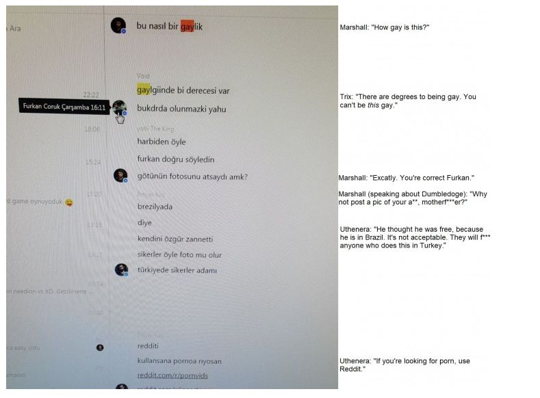 2016年,还在土耳其冠军联赛效力,随队伍Supermassive战队打进季中赛的Dumbledoge在淘汰赛开始前几天,得到了几张土耳其LOL职业选手群聊天内容的照片。根据照片显示,几位土耳其选手及教练,聚在一个群里讨论起Dumbledoge以及他同性恋的身份。