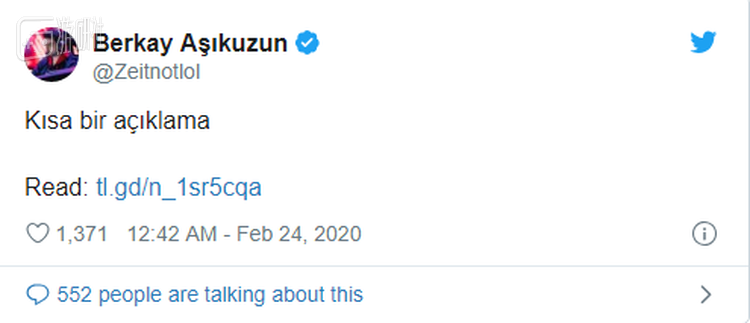被指控的人中,也有人诚心接受Dumbledoge指控,并公开道歉的。同样在截图中曾对Dumbledoge发表过言论的另一位土耳其选手Utheneras也在Twitter上对此事发表回应。他声称自己很早之前就已经为聊天的事情和Dumbledoge面对面的道过歉了。